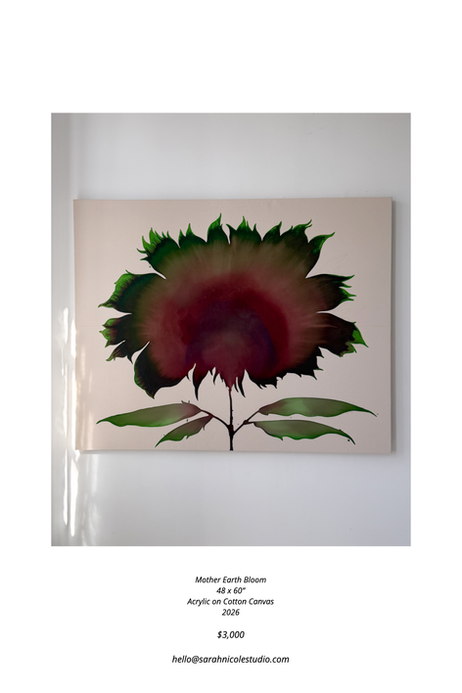 The Dusk Blooms are an evolving series of large-scale floral paintings on raw canvas, first conceived in 2024. Rooted in femininity and resilience, they unfold through layered washes of color, echoing the strength and softness of blooms that open as day turns to dusk.